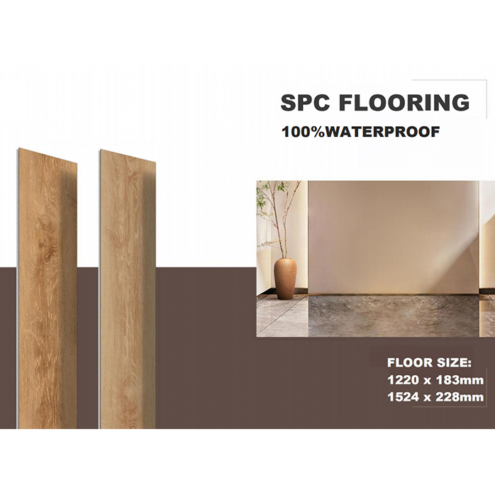 SPC Flooring is made of poly materials,shaped by the processing of extruding,stable dimension,with waterproof performance.